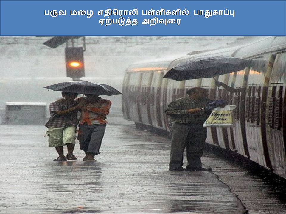 பருவ மழை எதிரொலி பள்ளிகளில் பாதுகாப்பு ஏற்படுத்த அறிவுரை
