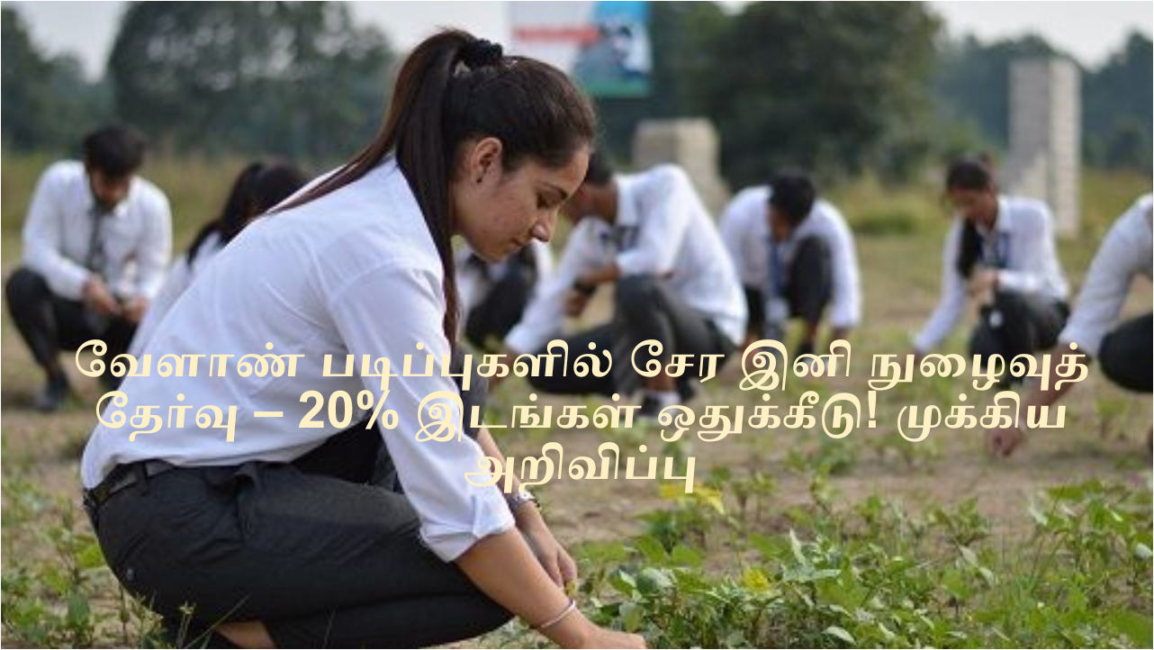 வேளாண் படிப்புகளில் சேர இனி நுழைவுத் தேர்வு – 20% இடங்கள் ஒதுக்கீடு! முக்கிய அறிவிப்பு