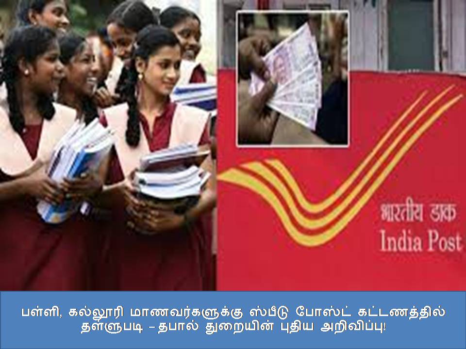 பள்ளி, கல்லூரி மாணவர்களுக்கு ஸ்பீடு போஸ்ட் கட்டணத்தில் தள்ளுபடி தபால் துறையின் புதிய அறிவிப்பு!