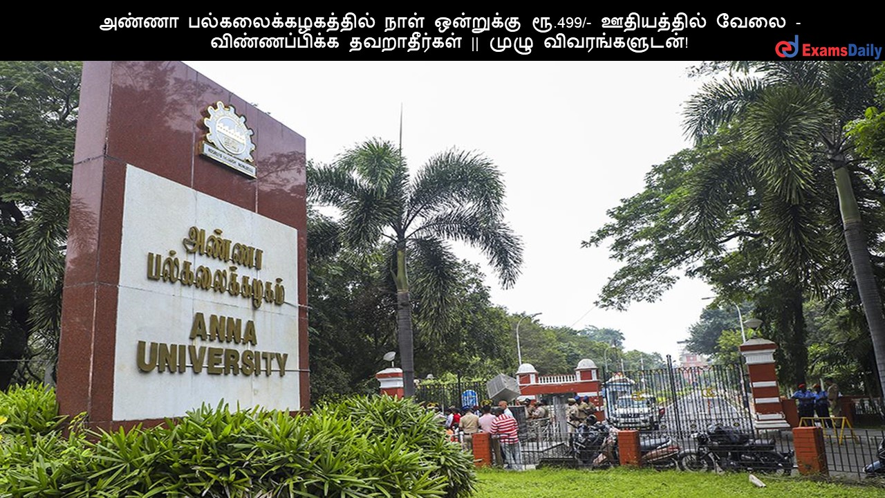 அண்ணா பல்கலைக்கழகத்தில் நாள் ஒன்றுக்கு ரூ.499/- ஊதியத்தில் வேலை – விண்ணப்பிக்க தவறாதீர்கள் || முழு விவரங்களுடன்!