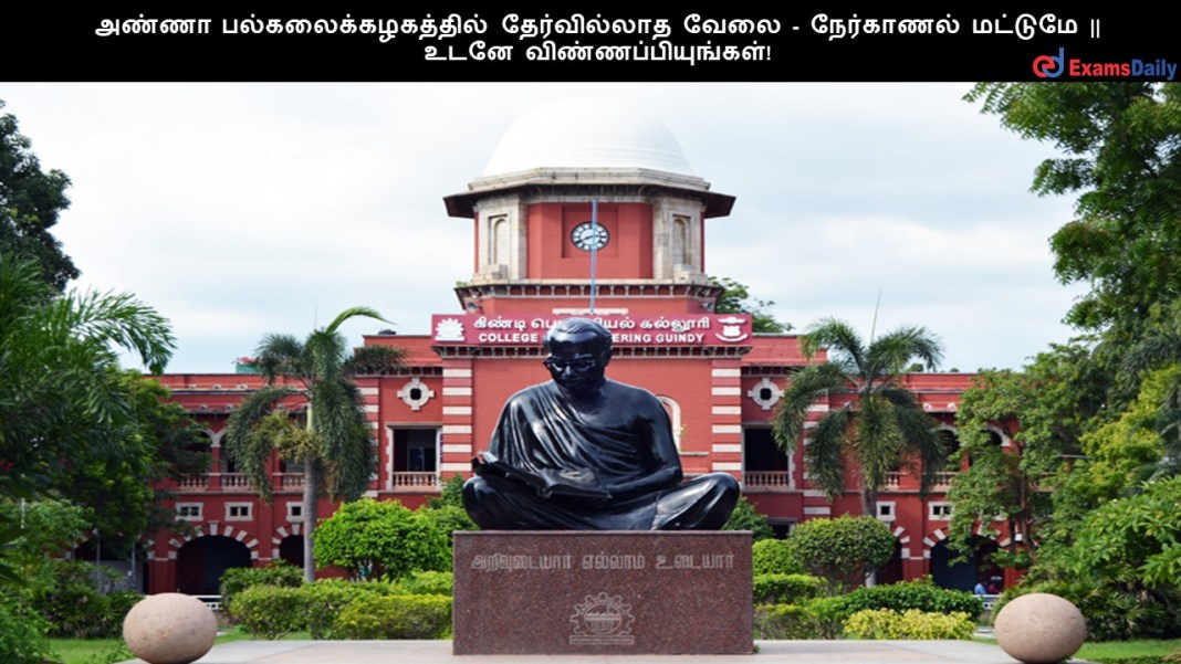 அண்ணா பல்கலைக்கழகத்தில் தேர்வில்லாத வேலை – நேர்காணல் மட்டுமே || உடனே விண்ணப்பியுங்கள்!