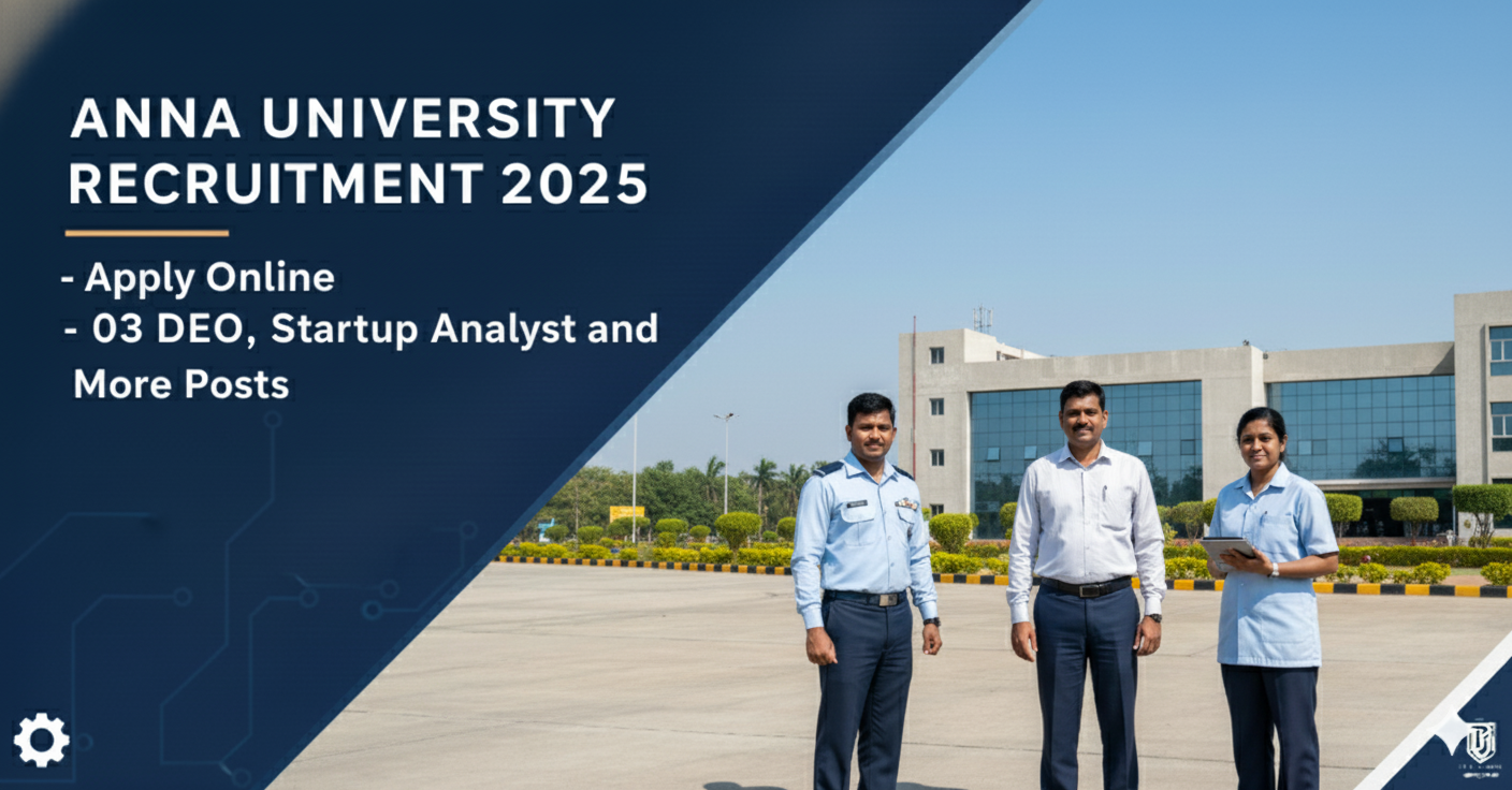 அண்ணா பல்கலைக்கழகம் (Anna University) சார்பில் 03 DEO, Startup Analyst மற்றும் பிற பணியிடங்களுக்கு புதிய வேலைவாய்ப்பு அறிவிப்பு வெளியிடப்பட்டுள்ளது. தகுதியான மற்றும் ஆர்வமுள்ள விண்ணப்பதாரர்கள் ஆன்லைன் வழியாக விண்ணப்பிக்கலாம். இந்த வேலைக்கு விண்ணப்பிக்க கடைசி தேதி 14-11-2025 ஆகும். கீழே தகுதி, சம்பளம், தேர்வு முறை மற்றும் விண்ணப்பிக்கும் விதம் குறித்து முழு விவரங்கள் கொடுக்கப்பட்டுள்ளன.