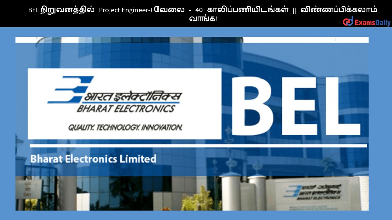 BEL நிறுவனத்தில் Project Engineer-I வேலை – 40 காலிப்பணியிடங்கள் || விண்ணப்பிக்கலாம் வாங்க!