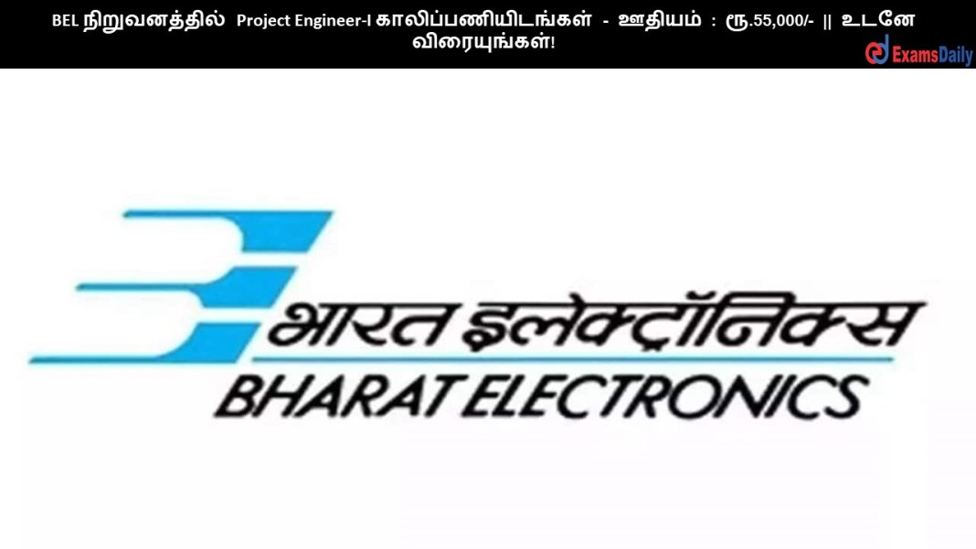 BEL நிறுவனத்தில் Project Engineer-I காலிப்பணியிடங்கள் – ஊதியம் : ரூ.55,000/- || உடனே விரையுங்கள்!