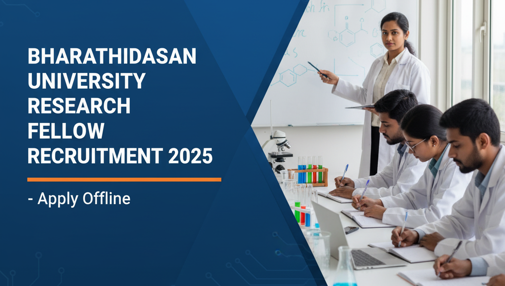பாரதிதாசன் பல்கலைக்கழகம் (Bharathidasan University) பல்கலைக்கழக ஆராய்ச்சி உதவியாளர் (University Research Fellow) பதவிக்கான அறிவிப்பை வெளியிட்டுள்ளது. மொத்தம் 04 காலியிடங்களுக்கு தகுதியான ஆராய்ச்சியாளர்கள் ஆஃப்லைன் வழியில் விண்ணப்பிக்கலாம். கடைசி தேதி 10-11-2025 ஆகும். விண்ணப்பிக்கும்முன் தகுதி, வயது வரம்பு, சம்பளம், தேர்வு முறை, விண்ணப்பிக்கும் நடைமுறை போன்ற அனைத்து விவரங்களையும் கீழே பார்க்கலாம்.