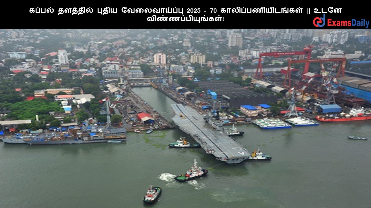 கப்பல் தளத்தில் புதிய வேலைவாய்ப்பு 2025 – 70 காலிப்பணியிடங்கள் || உடனே விண்ணப்பியுங்கள்!