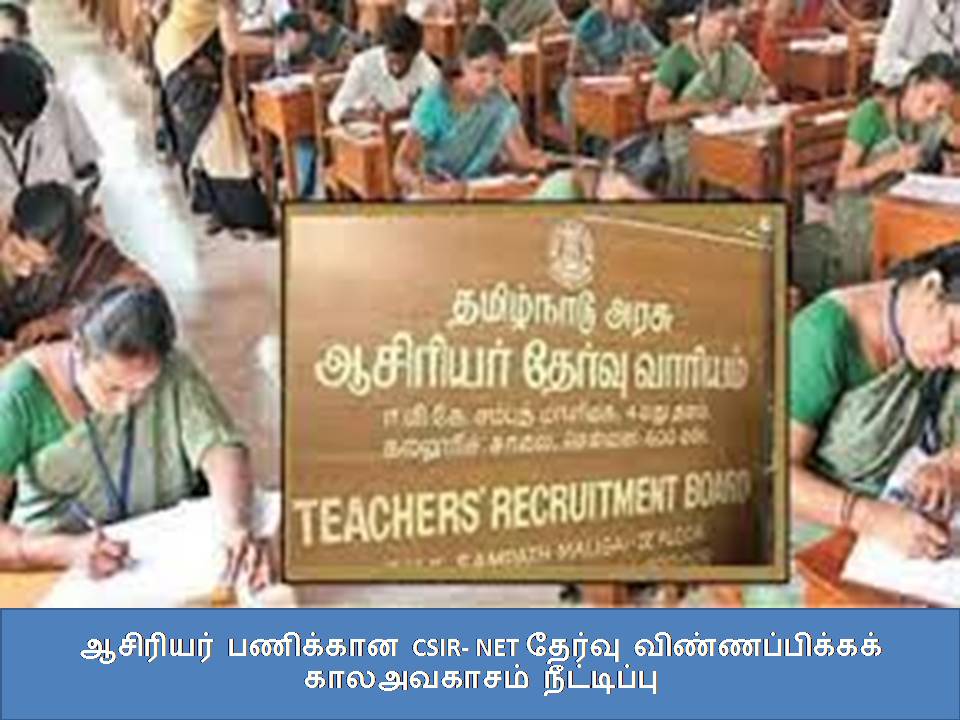 ஆசிரியர் பணிக்கான CSIR- NET தேர்வு விண்ணப்பிக்கக் காலஅவகாசம் நீட்டிப்பு