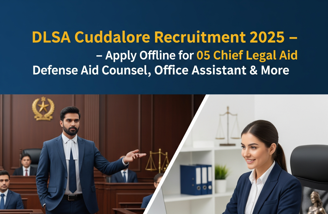 கடலூர் மாவட்ட சட்ட சேவை ஆணையம் (DLSA Cuddalore) சார்பில் 2025 ஆம் ஆண்டிற்கான புதிய வேலைவாய்ப்பு அறிவிப்பு வெளியிடப்பட்டுள்ளது. மொத்தம் 05 காலியிடங்கள் Chief Legal Aid Defense Counsel, Deputy Chief Legal Aid Defense Counsel, Assistant Legal Aid Defense Counsel மற்றும் Office Assistant/Clerk பதவிகளுக்காக நிரப்பப்பட உள்ளது. சட்டத் துறையில் அனுபவமுள்ள பட்டதாரிகளுக்கு இது சிறந்த அரசு வேலை வாய்ப்பு. தகுதியானவர்கள் விண்ணப்பப் படிவத்தை பூர்த்தி செய்து தேவையான ஆவணங்களுடன் 25 அக்டோபர் 2025க்குள் ஆஃப்லைனில் சமர்ப்பிக்கலாம்.