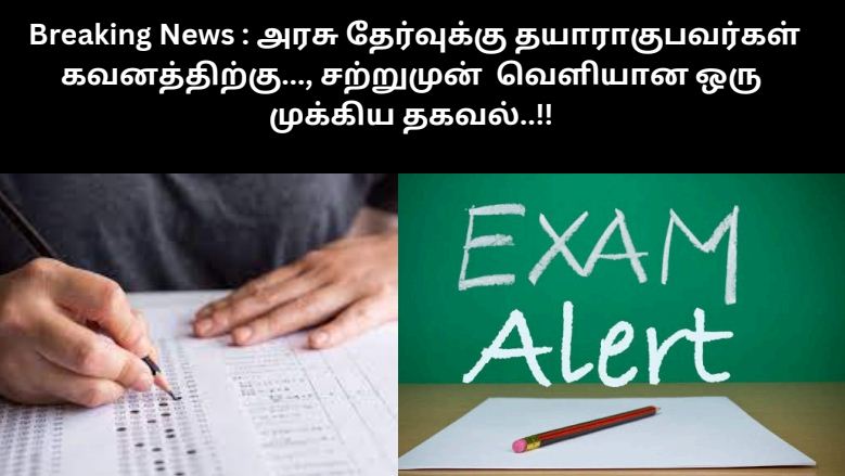 Breaking News : அரசு தேர்வுக்கு தயாராகுபவர்கள் கவனத்திற்கு…, சற்றுமுன் வெளியான ஒரு முக்கிய தகவல்..!!