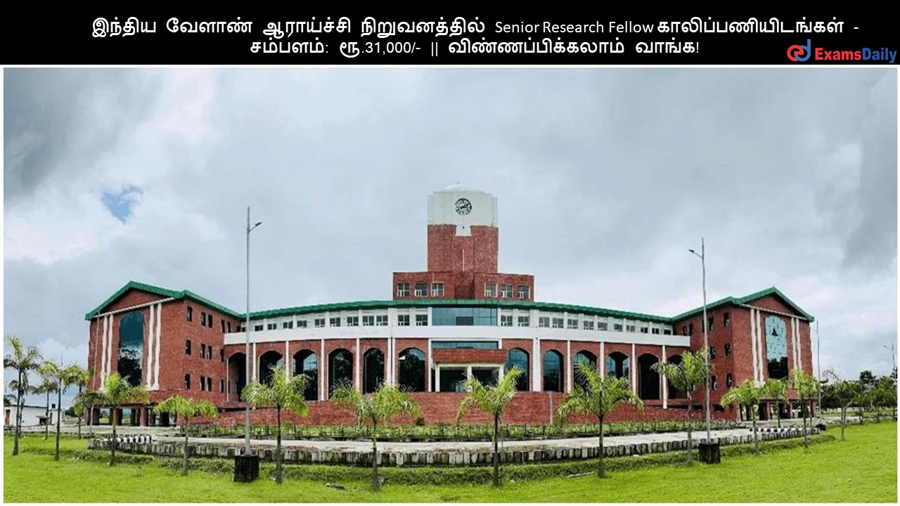 இந்திய வேளாண் ஆராய்ச்சி நிறுவனத்தில் Senior Research Fellow காலிப்பணியிடங்கள் – சம்பளம்: ரூ.31,000/- || விண்ணப்பிக்கலாம் வாங்க!