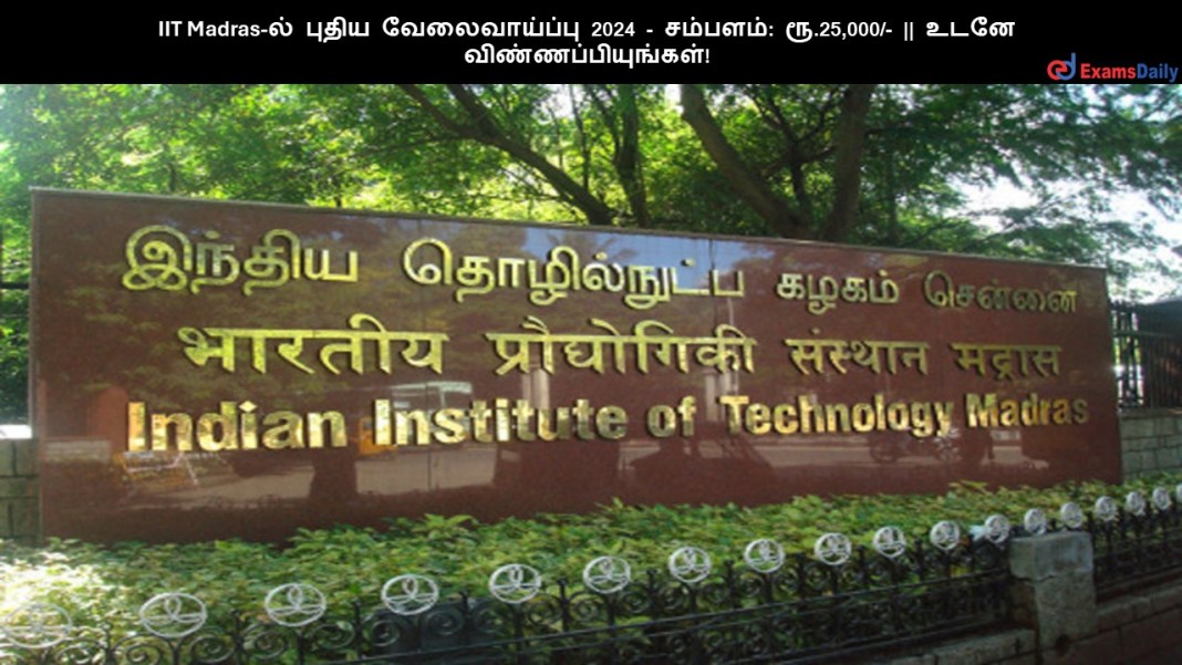 IIT Madras-ல் புதிய வேலைவாய்ப்பு 2024 – சம்பளம்: ரூ.25,000/- || உடனே விண்ணப்பியுங்கள்!