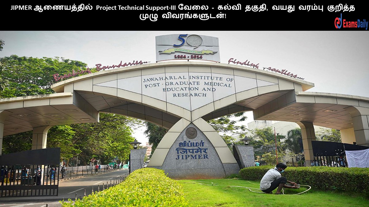 JIPMER ஆணையத்தில் Project Technical Support-III வேலை – கல்வி தகுதி, வயது வரம்பு குறித்த முழு விவரங்களுடன்!