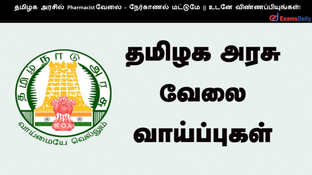 தமிழக அரசில் Pharmacist வேலை – நேர்காணல் மட்டுமே || உடனே விண்ணப்பியுங்கள்!