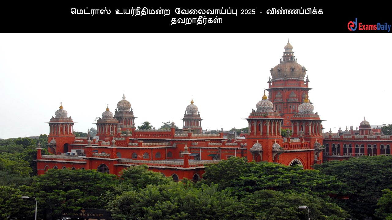 மெட்ராஸ் உயர்நீதிமன்ற வேலைவாய்ப்பு 2025 – விண்ணப்பிக்க தவறாதீர்கள்!