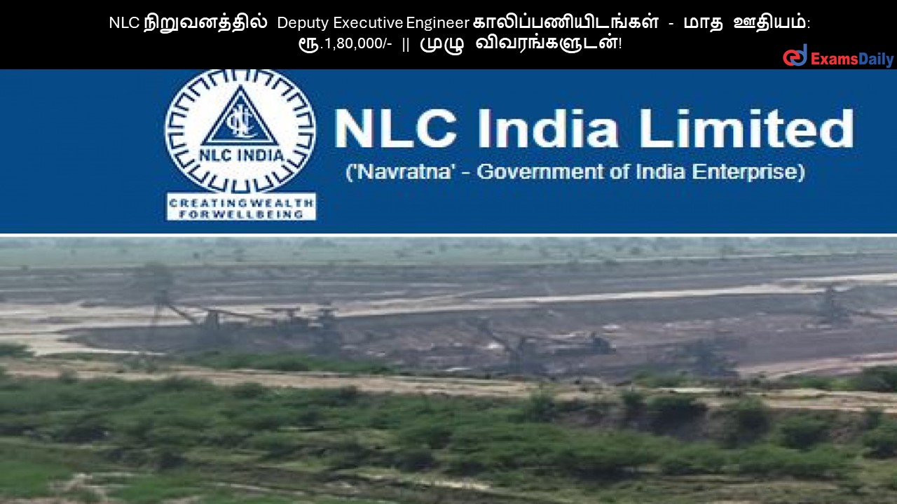 NLC நிறுவனத்தில் Deputy Executive Engineer காலிப்பணியிடங்கள் – மாத ஊதியம்: ரூ.1,80,000/- || முழு விவரங்களுடன்!