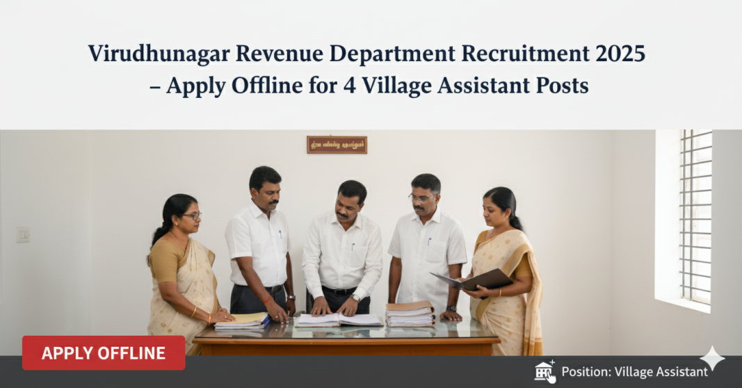 விருதுநகர் வருவாய்த்துறை வேலைவாய்ப்பு 2025 – Village Assistant | மாத சம்பளம் ₹11,100 – ₹35,100 | தபால் மூலம் விண்ணப்பிக்கவும்