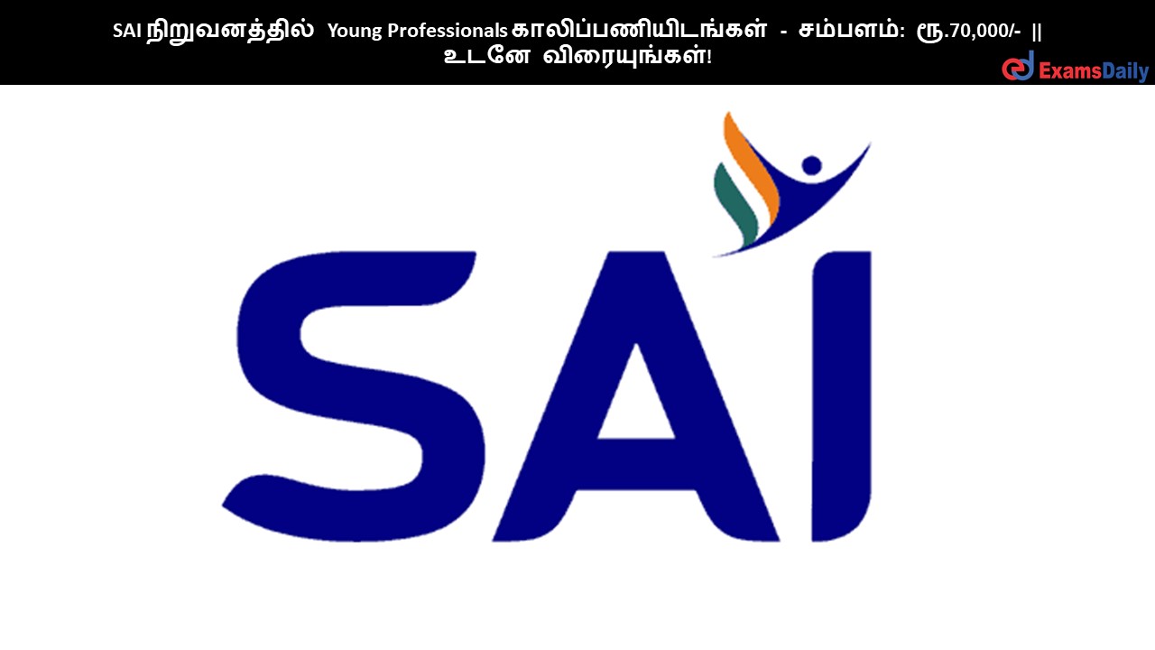 SAI நிறுவனத்தில் Young Professionals காலிப்பணியிடங்கள் – சம்பளம்: ரூ.70,000/- || உடனே விரையுங்கள்!