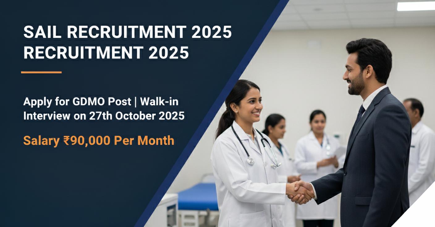 SAIL ஆட்சேர்ப்பு 2025 – GDMO பதவிக்கான வேலைவாய்ப்பு | மாதம் ₹90,000 சம்பளம் | நேர்காணல் தேதி: 27.10.2025