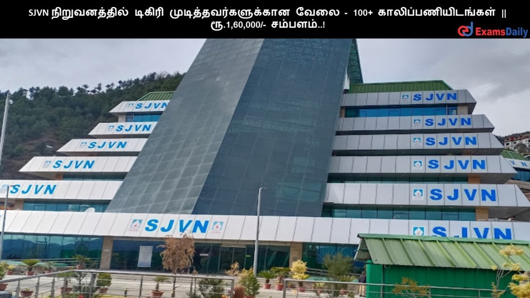 SJVN நிறுவனத்தில் டிகிரி முடித்தவர்களுக்கான வேலை – 100+ காலிப்பணியிடங்கள் || ரூ.1,60,000/- சம்பளம்..!