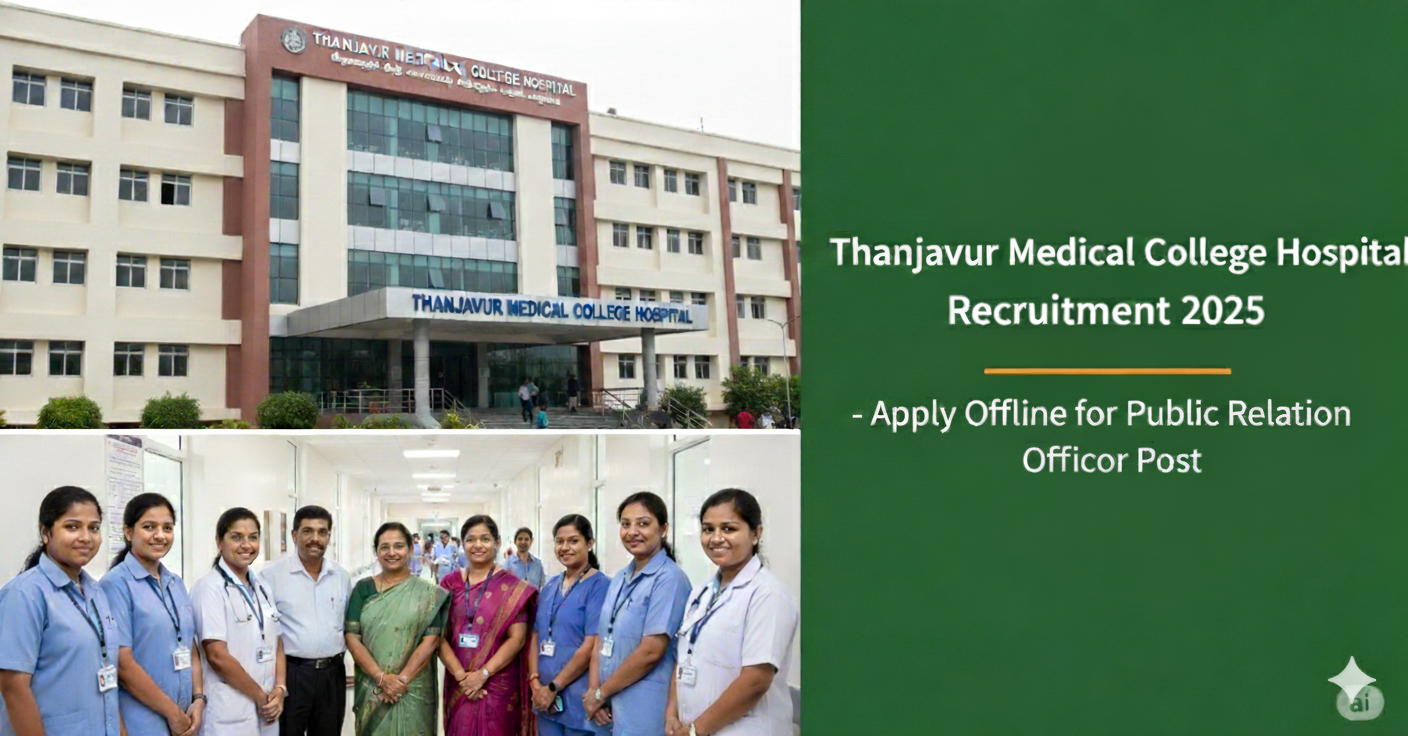தஞ்சாவூர் மாவட்டத்தில் செயல்படும் தஞ்சாவூர் மருத்துவக் கல்லூரி மருத்துவமனை (Thanjavur Medical College Hospital) சார்பில் 01 Public Relation Officer (பொது தொடர்பு அலுவலர்) பணிக்கான வேலைவாய்ப்பு அறிவிப்பு வெளியாகியுள்ளது. தகுதியுடையவர்கள் தங்கள் விண்ணப்பங்களை ஆஃப்லைன் வழியாக 24 நவம்பர் 2025க்குள் சமர்ப்பிக்கலாம்.