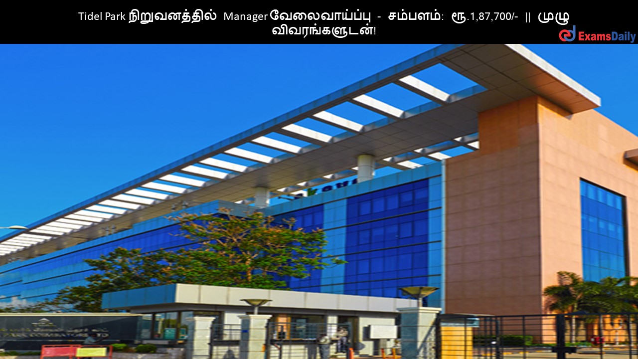 Tidel Park நிறுவனத்தில் Manager வேலைவாய்ப்பு – சம்பளம்: ரூ.1,87,700/- || முழு விவரங்களுடன்!