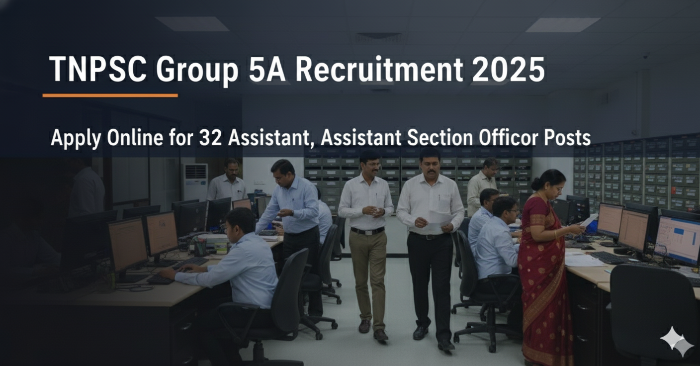 TNPSC குழு 5A வேலைவாய்ப்பு 2025 – 32 உதவி அதிகாரி, உதவி பிரிவு அலுவலர் பதவிகள் | ஆன்லைனில் விண்ணப்பிக்க
