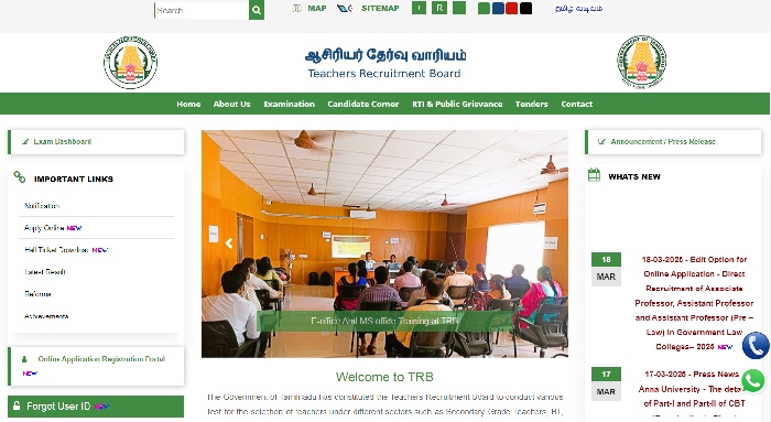 - முதலில் TRBயின் அதிகாரப்பூர்வ இணையதளமான https://trb.tn.gov.in/ செல்லவும்.