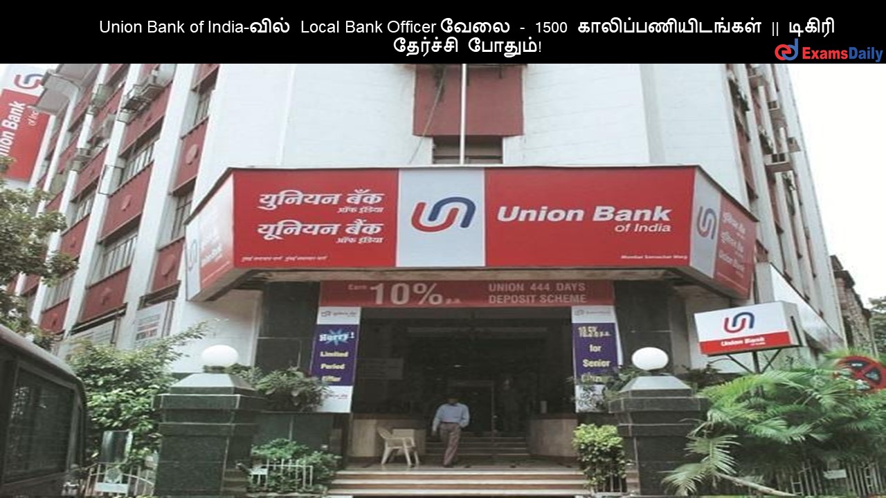 Union Bank of India-வில் Local Bank Officer வேலை – 1500 காலிப்பணியிடங்கள் || டிகிரி தேர்ச்சி போதும்!