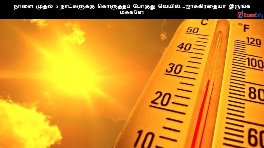 நாளை முதல் 5 நாட்களுக்கு கொளுத்தப் போகுது வெயில்….ஜாக்கிரதையா இருங்க மக்களே!